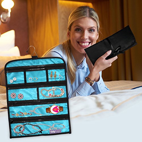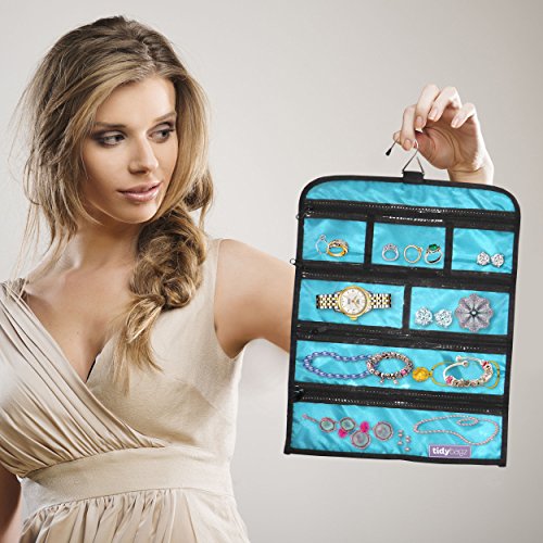 Tidybagz | Jewelry Roll Bag | Travel & Home Organizer | Safe, Elegant, Zippered Solution To Jewelry Organization | Large 7 Compartment Roll Bag