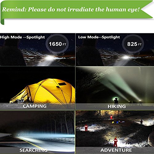 SUPER BRIGHT LED LIGHT: The CREE LED front light provides you with two brightness levels.Ultra-long illumination range of about 800 meters(about 2600 ft).Can be used for long distance light, convenient search target.