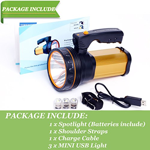 ROMER LED Rechargeable Handheld Searchlight High-power Super Bright 9000 MA 6000 LUMENS CREE Tactical Spotlight Torch Lantern Flashlight (Gold)