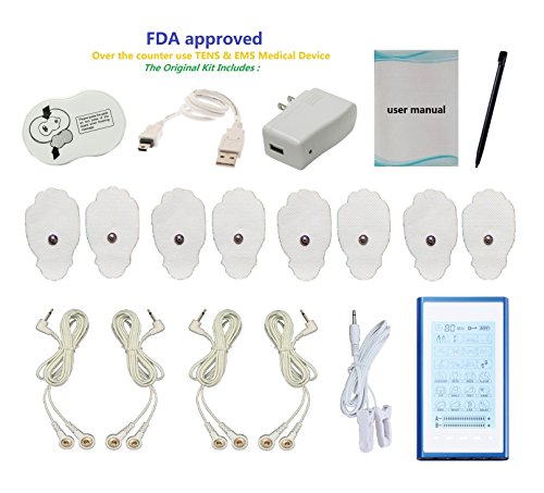 - Feature : HealthmateForever Electrotherapy Device: 24 preprogrammed massage modes in a rectangle design: Tuina (Push & Pull), Acupuncture, Tapping, Guasha (Scraping), Cupping, Shiatus (Finger Press), Pressure, Back Pain, Deep Tissue Massage, Body Building, Weight Loss, Combination, Shoulder, Neck, Back, Elbow, Hip, Ankle, Foot, Hand, Knee, Wrist, Ear, and Relax. / Adjustable 10-80 minute timer, 20 levels of adjustable intensity/strength (20 per output) / 4 outputs with dual channel design (Two outputs per channel), Customizable intensity and mode for each channel, Allows up to 8 pads to be used at the same time / Rechargeable internal lithium battery - up to 10 hours of continuous use / Back-lit Touchscreen LCD Display. The kit includes: 1 HealthmateForever T24AB2 device, 8 piece self-adhesive conductive reusable gel pads, 4 sets of electrode snap-on wires, 1 set of electrode ear clips wire, 1 USB Charger/ 1 Wall Unit adapter, 1 pads holder, 1 stylus pen, 1 pair of conductive socks, Operating Manual with mode description insert, Acupuncture placement point chart, Lifetime Warranty Card