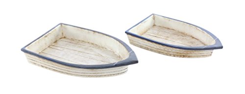 Deco 79 56767 Ceramic Boat Trays (Set of 2), White/Gray