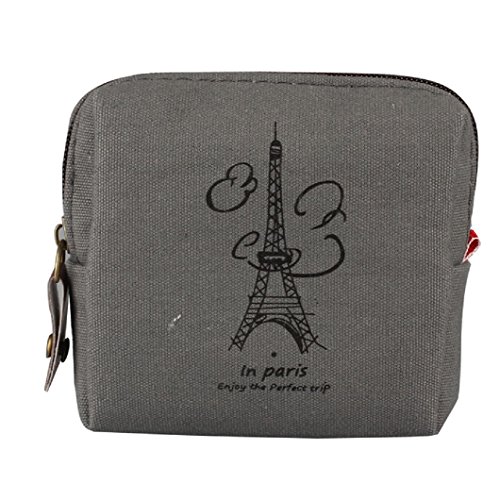 DZT1968(TM)Women Canvas Retro Small Mini Square Eiffel Wallet Coin Purses Clutch Money Pouch Bags Gift (Gray)