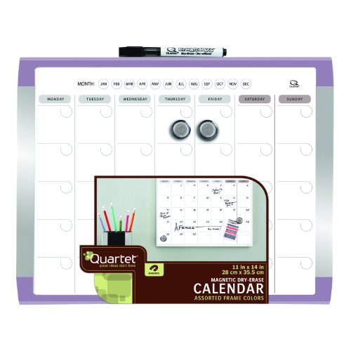 Quartet dry erase boards are an essential tool for creativity and communication. They work just as hard in an office, workstation, or conference room as they do in a dorm room, bedroom, or pantry. Use Quartet dry erase boards in brainstorming sessions to collect ideas, in team meetings to share information, or to stay on top of activities, messages, and to do lists. Quartet combines function with a high quality fit and finish for a good looking, wall mounted writing surface that is easy to install (with the included mounting hardware), convenient to use, and built to last. This 11 x 14 inch board features a white plastic frame and excellent write-on, wipe-off capabilities. With a 1-month calendar and a magnetic surface, this calendar and magnetic dry erase board from Quartet is the ideal choice to communicate with style!