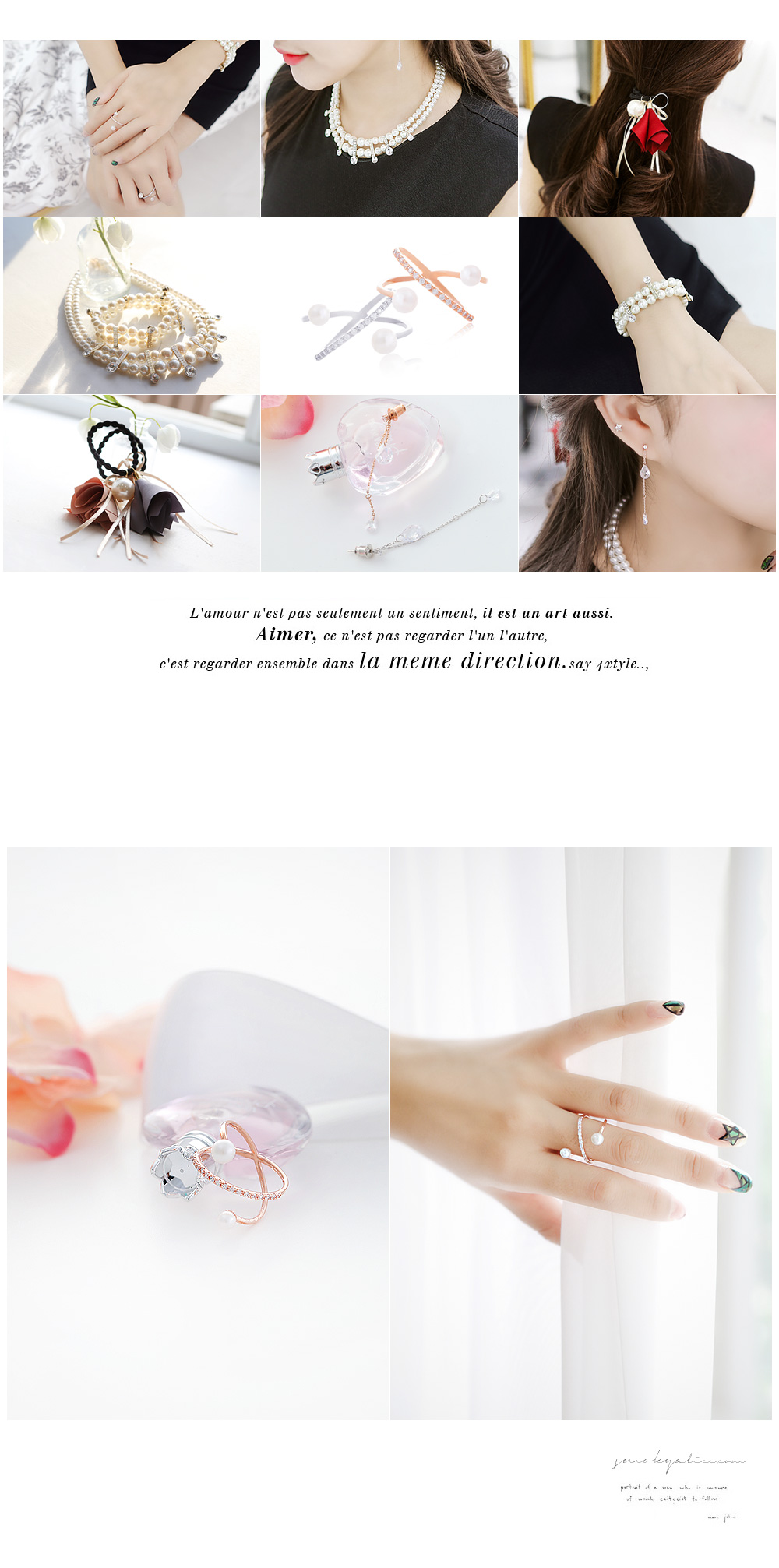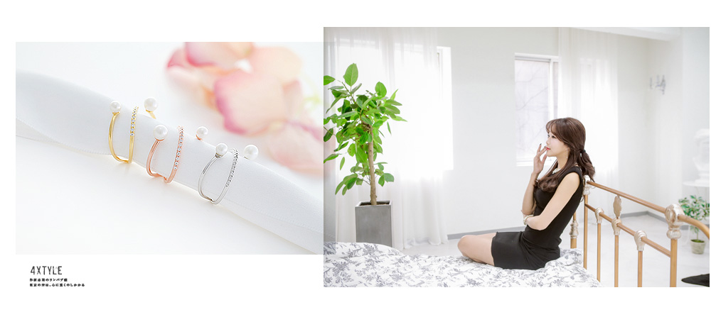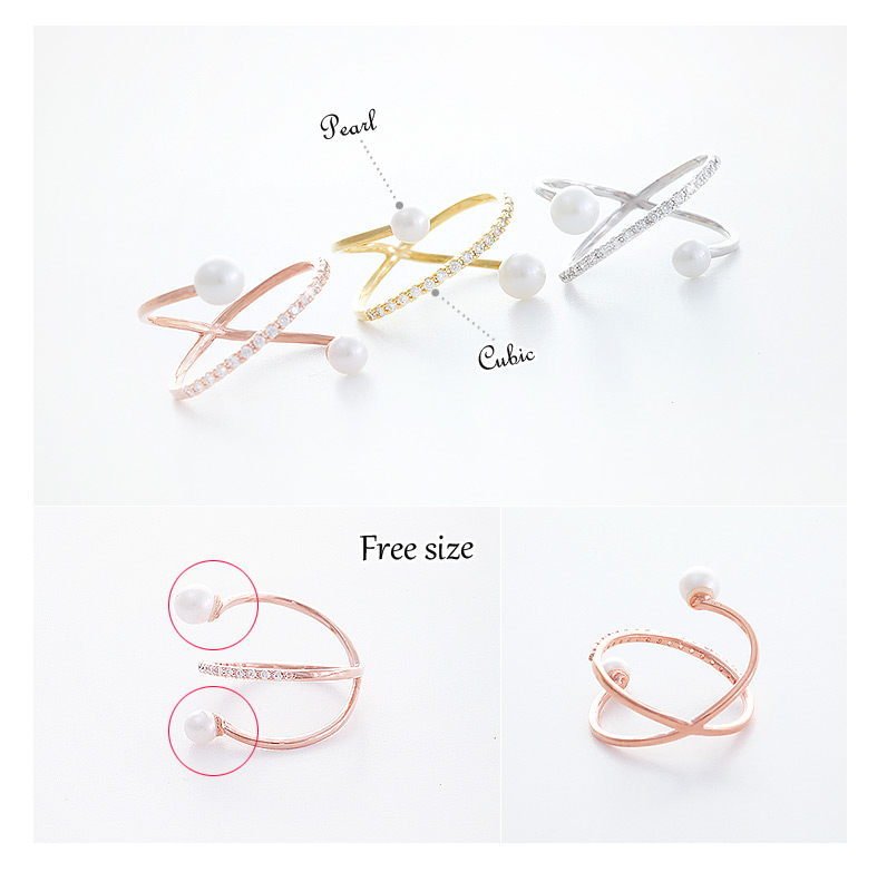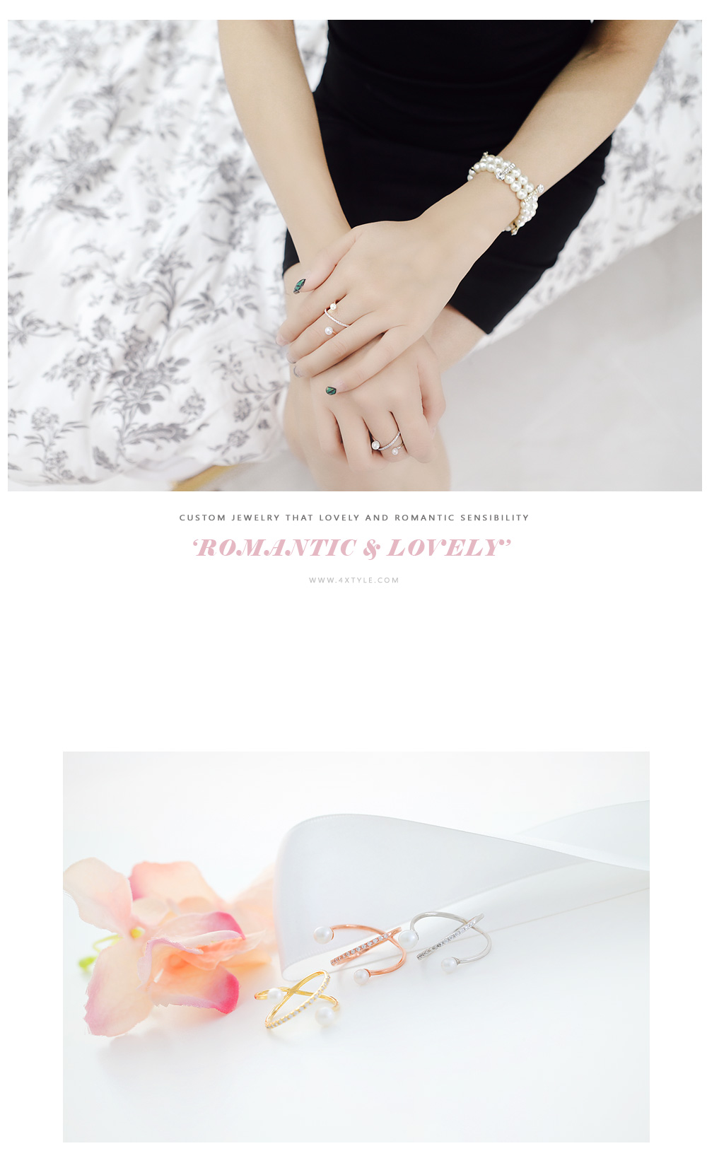 우아한 곡선 라인위로 고급스러운 큐빅과 살짝 광택이 있는 청아한 진주가