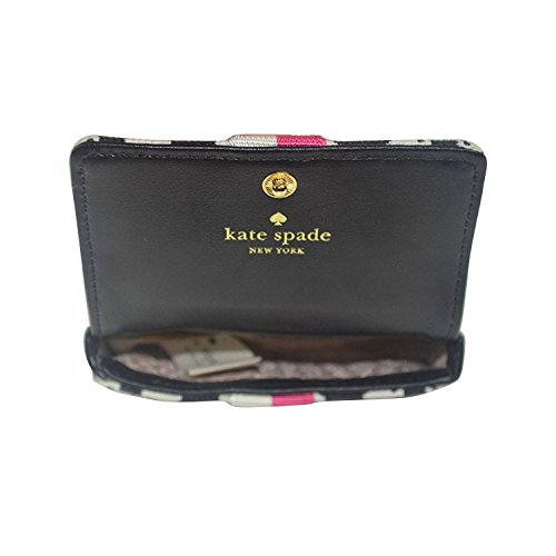 - Feature : Kate Spade Classic Spade Holly Card Case Black Cream WLRU1915 / Snap closure, Cotton jacquard fabric / Leather interior / Gold tone hardware, leather kate spade plate on front / Approx. 4"(L) X 3"(H) x 1"(W)