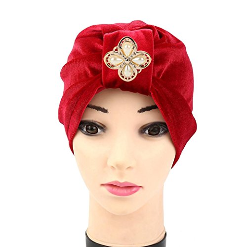 (DZT1968)/Accessories/Hair Accessories/DIRECT FROM USA/DZT1968 Women velvet peach heart diamond hat Muslim Ruffle Cancer Chemocap
