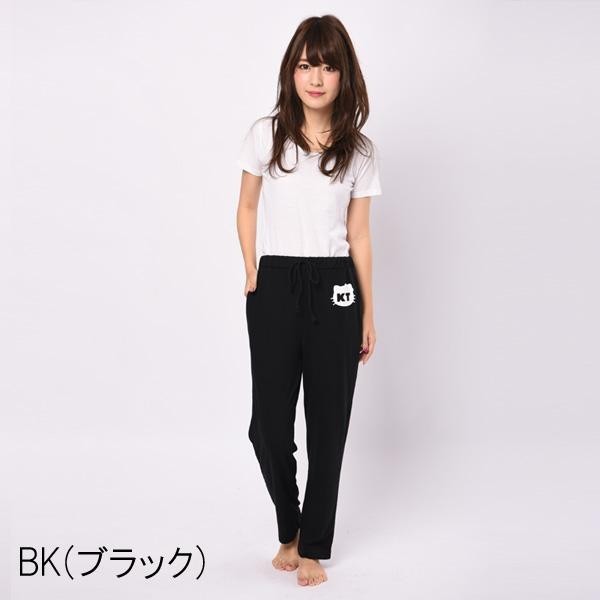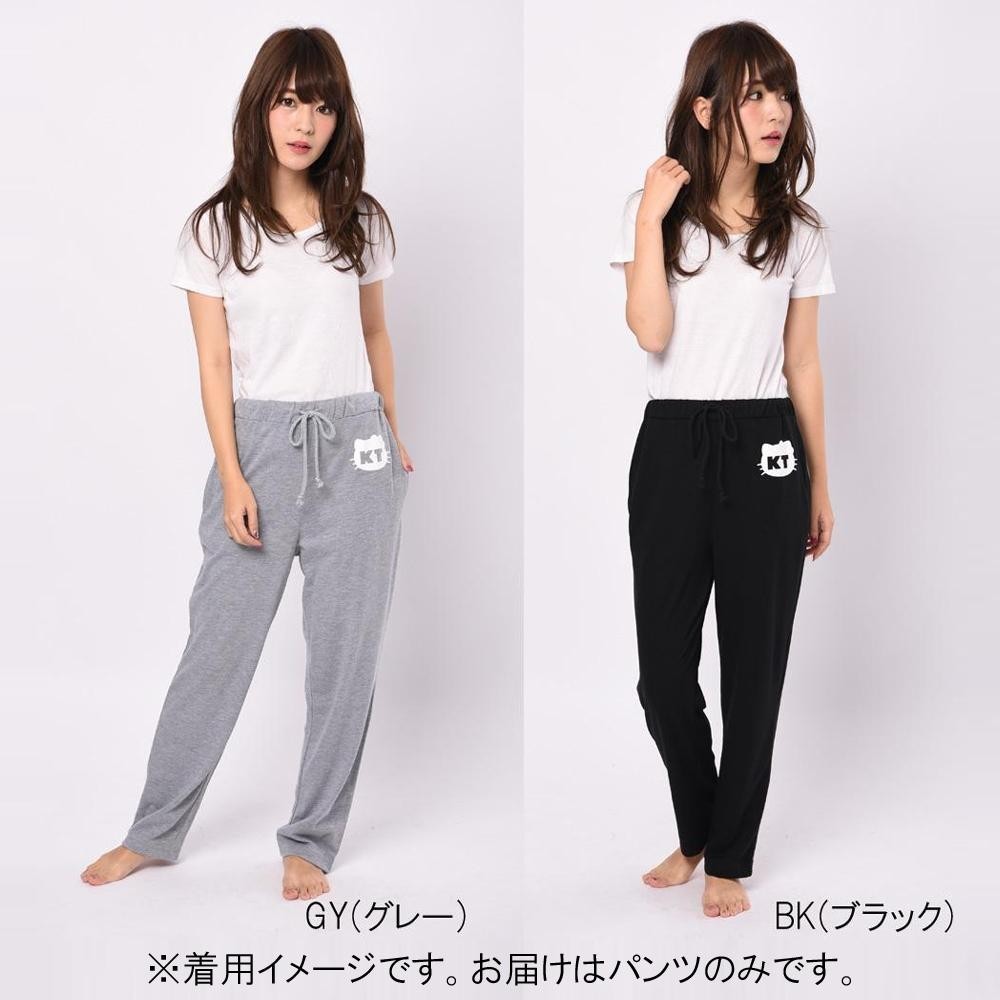 着心地抜群!!お部屋着やちょっとしたお散歩にピッタリのパンツです。シルエット+ロゴのシンプルなデザインなので、さりげなくキティちゃん好きをアピールできます♪