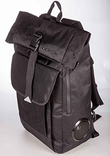 -. Feature : Built-in Stereo Speakers and 3000 milliWATT amplifier / Connects to any Smartphone or Table with 3.5mm headphone jack / 8+ hours of play back from 4 x "AA" replaceable batteries / Fully Functioning Backpack / Splash Resistant Speakers