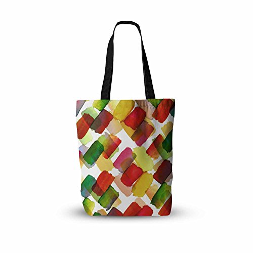 KESS InHouse Ebi Emporium "Strokes Of Genius 4, Red Green " Gold White Everything Tote Bag, 18" x 18", Multicolor