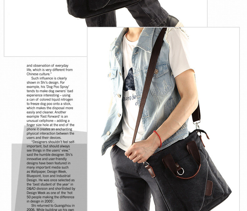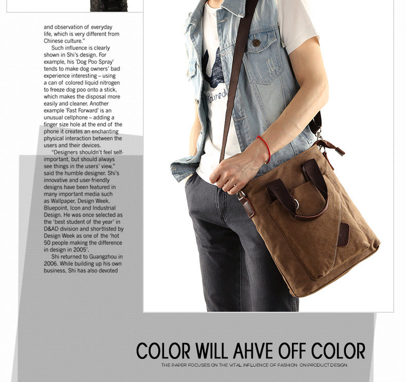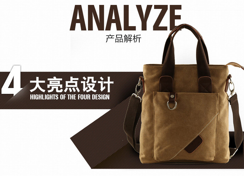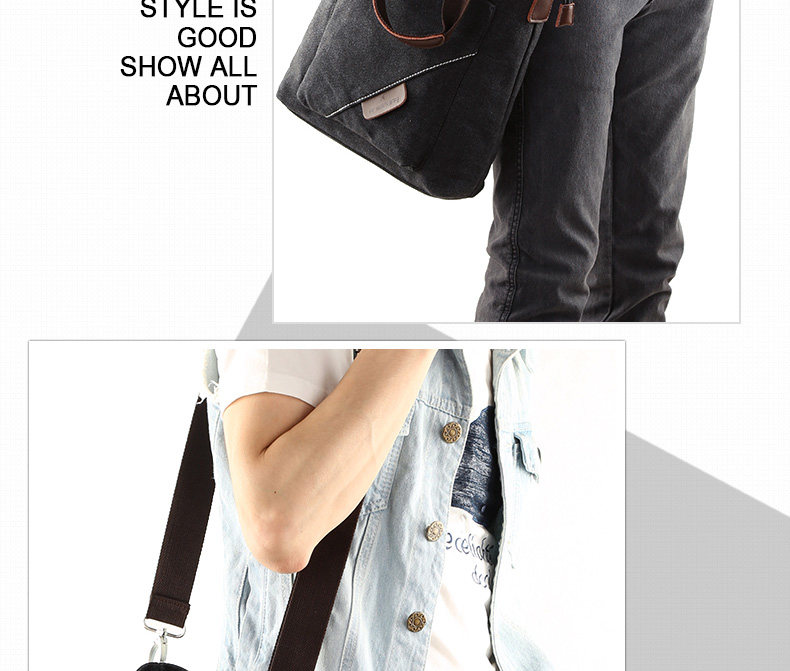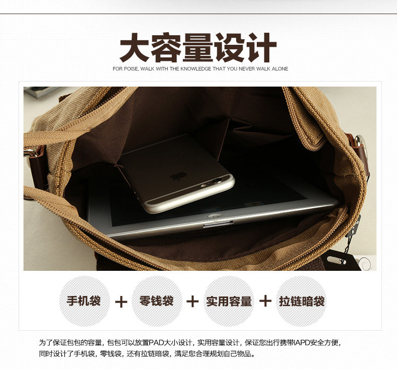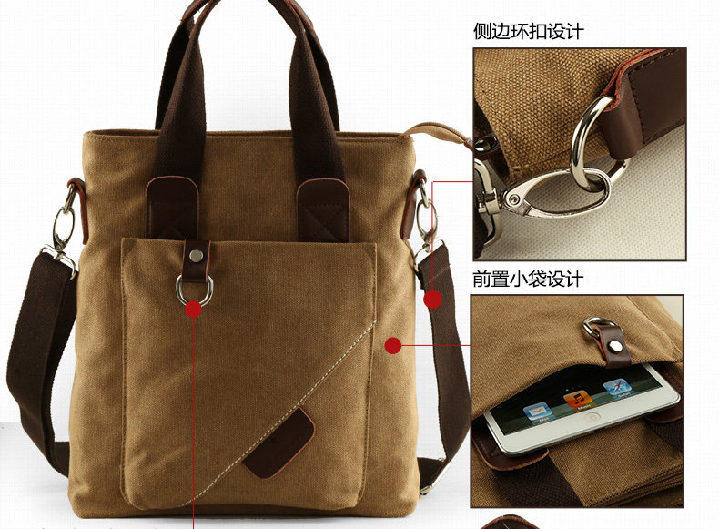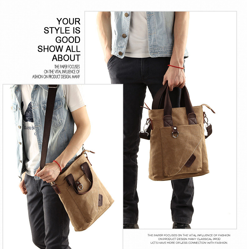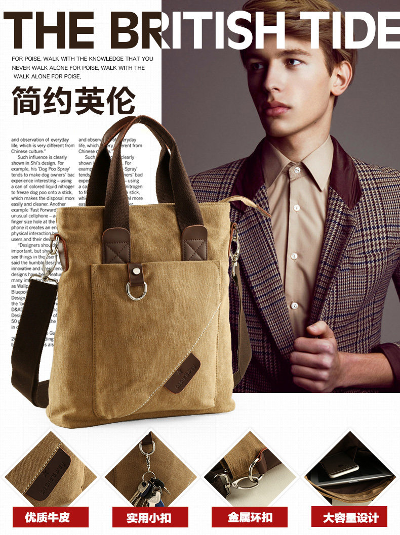 墨一潮流帆布单肩包男士手提包休闲斜挎包学生背包男包韩版斜背包