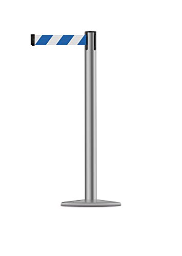 Tensabarrier 889U-3P-3P-MAX-NO-D1X-C - Polished Stainless Post, 2" Wide, 13' Length Chevron Blue & White Belt , 38" Height, 2.5" Wide, 156" Length