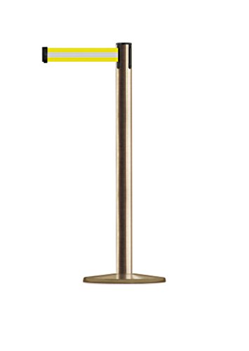 Tensabarrier 889U-2S-2S-MAX-NO-S8X-C - Satin Brass Post, 2" Wide, 13' Length Yellow with Reflective Silver Belt , 38" Height, 2.5" Wide, 156" Length