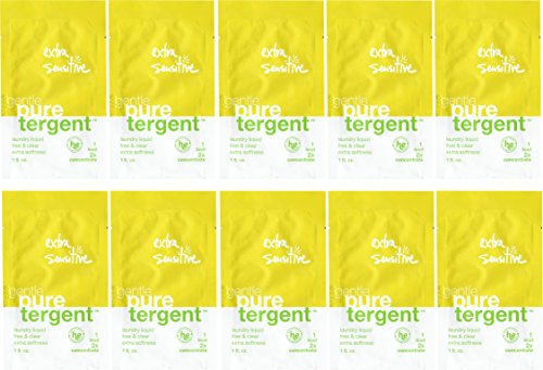 Puretergent - Gentle Laundry Liquid, X-tra Sensitive Formula, Scent Free Aloe (1oz travel size), Pack of 10