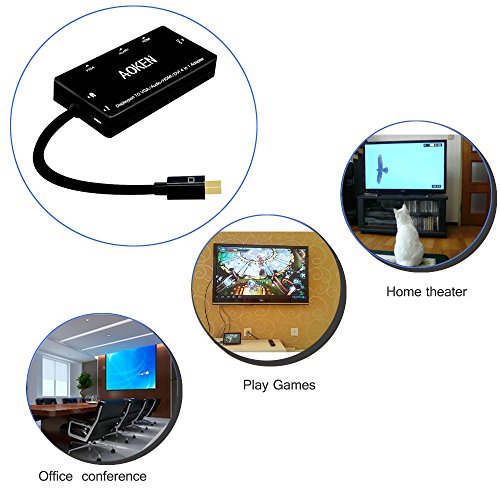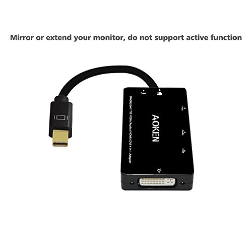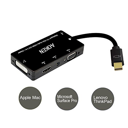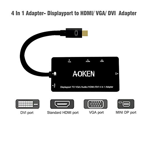 Aoken Gold Plated Mini DisplayPort (ThunderboltTM Port Compatible) to HDMI/VGA/DVI Male to Female 4-in-1 cable Adapter in Black Support audio for VGA Port