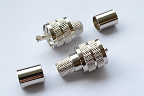 Pack of 5 UHF Male Silver Crimp PL259 Coax Connector RG8 RG214 RG213 9913 LMR400, Silver Plated for Ham Radio