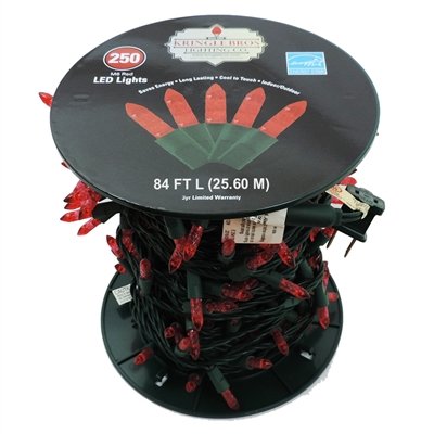 Kringle Brothers M6 Red LED, Christmas Light Strand on Spool - 250 Lights - 84 ft long - 4" Spacing of LED's