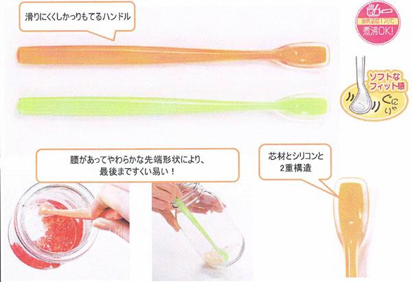| シリコン製だから食材を最後まですくい易く、口当たりが滑らかなスプーンです。熱に強いので熱いものでも安心して使用できます。食器などに触れてもいやな音がしません。滑りにくくしっかり持てるハンドルです。芯材とシリコンとの2重構造です。 |