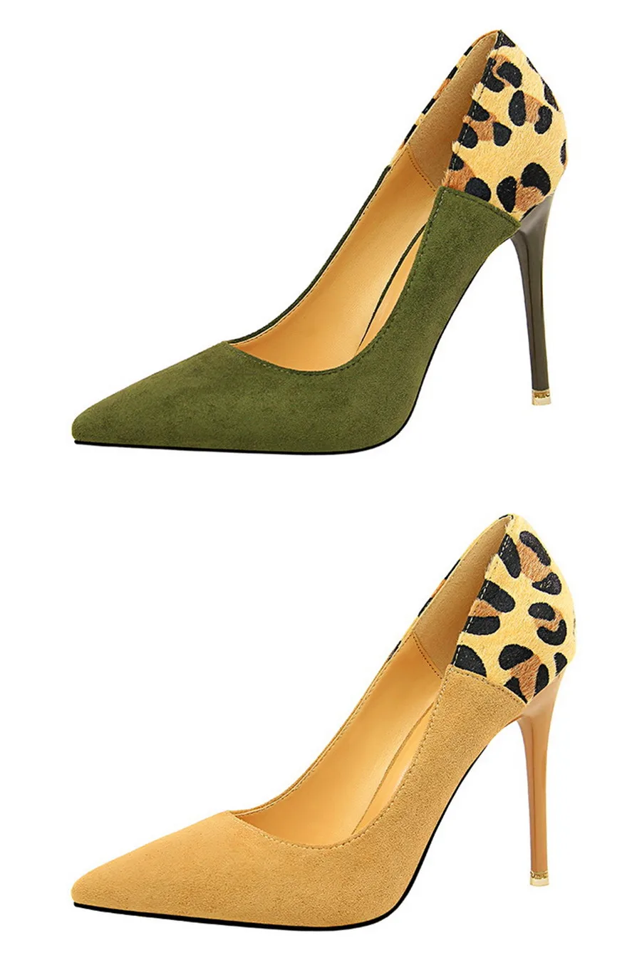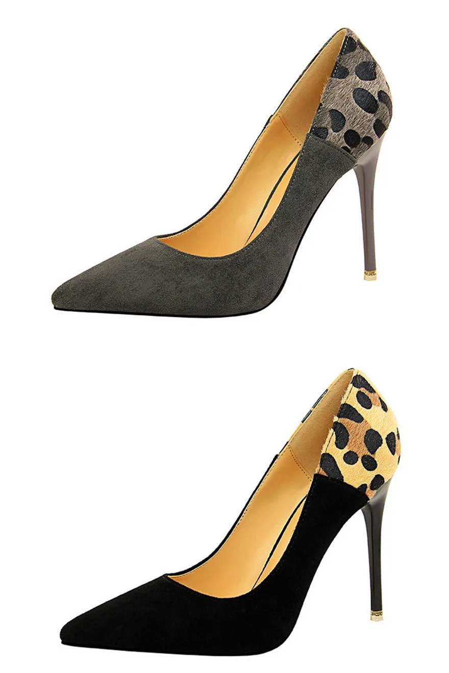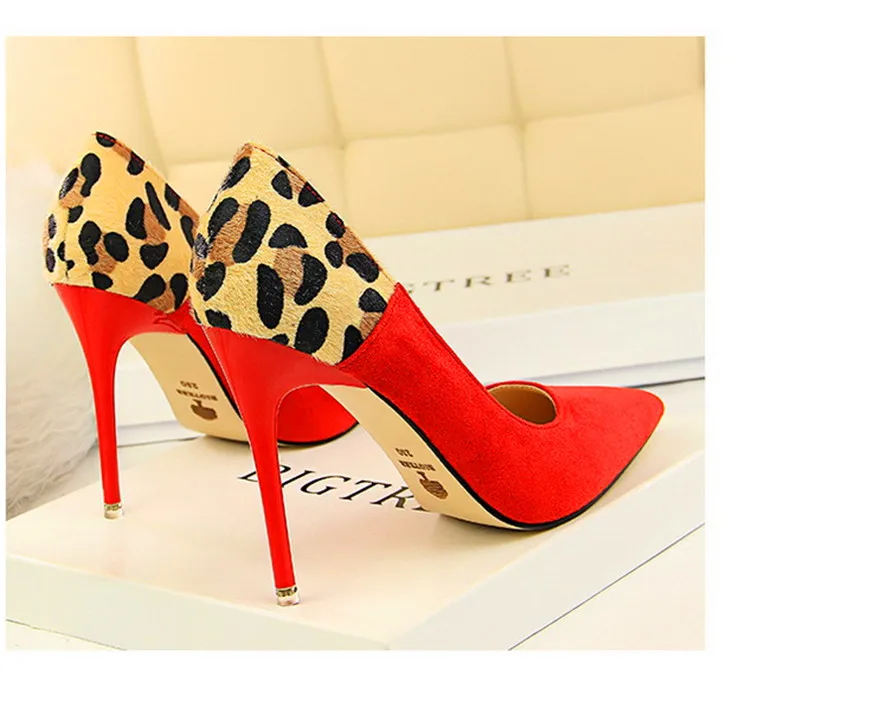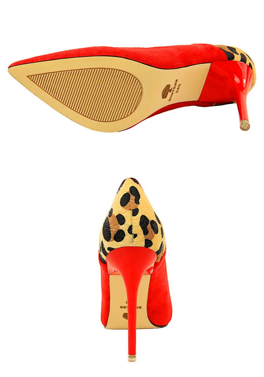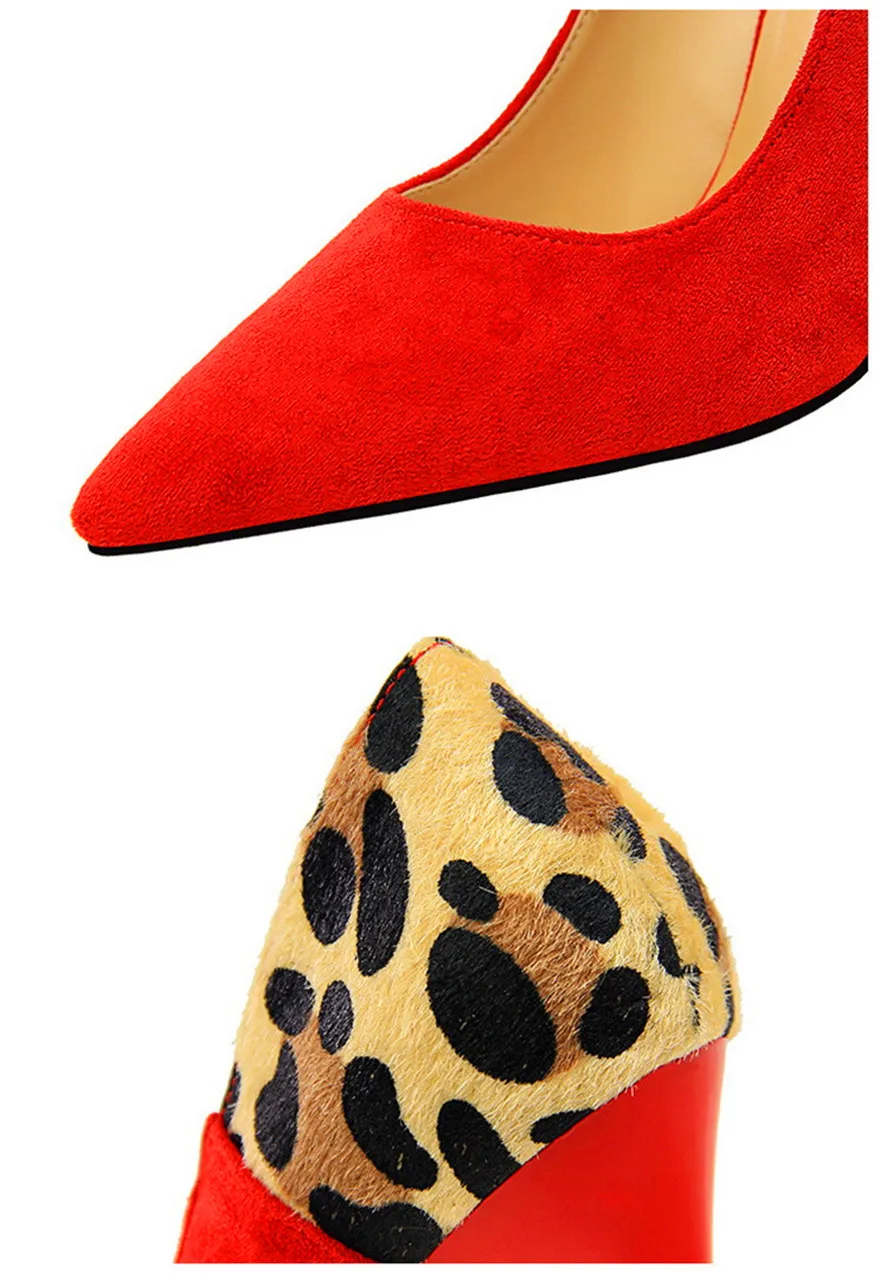 Item:Sexy Leopard Spliced Flock Show Thin Pointed Toe Women's Party Shoes