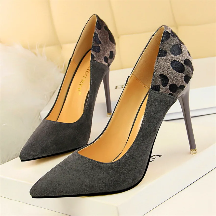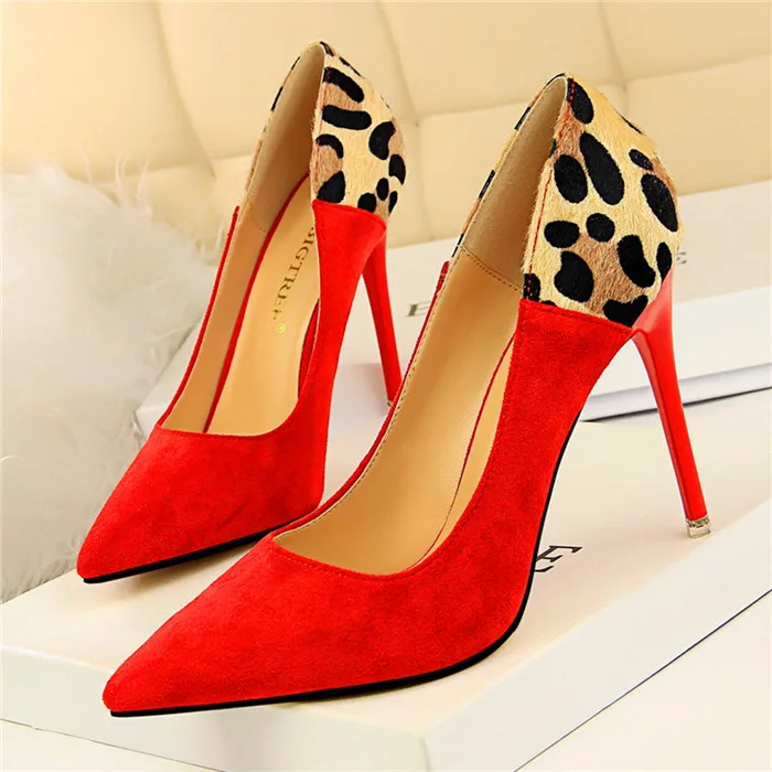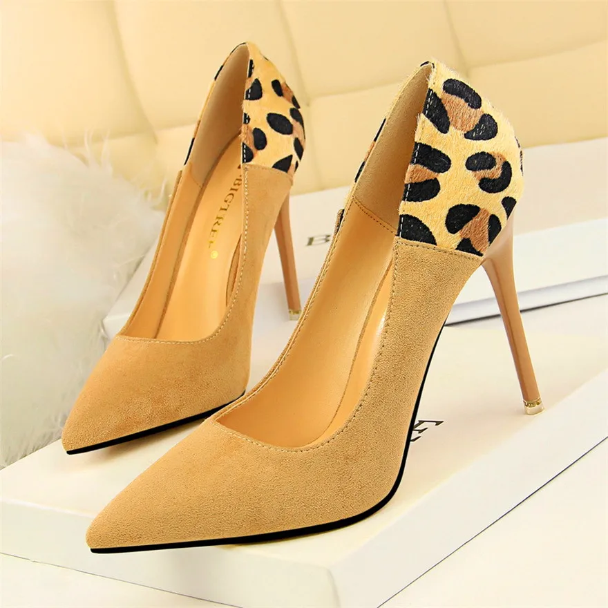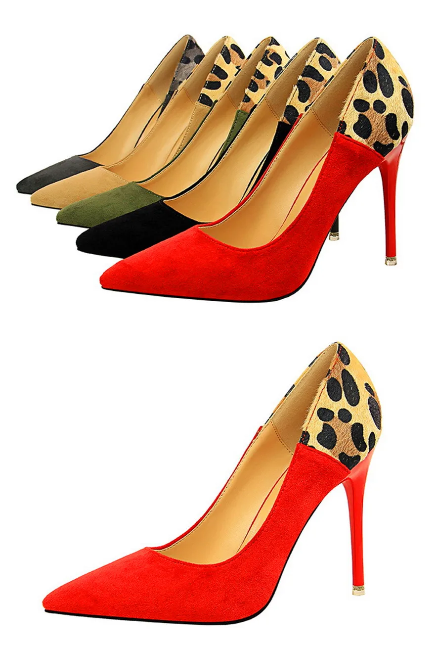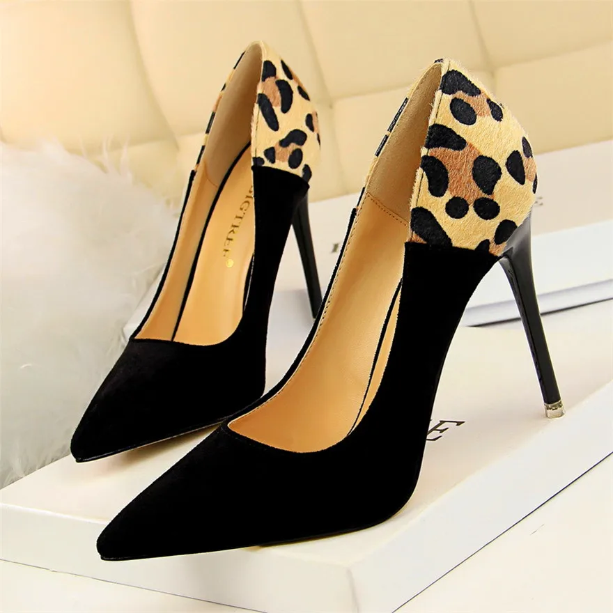 Item:Sexy Leopard Spliced Flock Show Thin Pointed Toe Women's Party Shoes