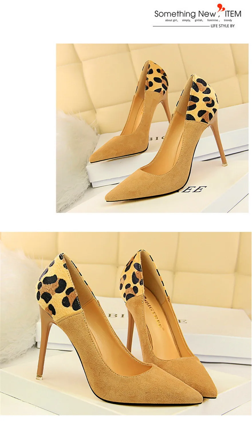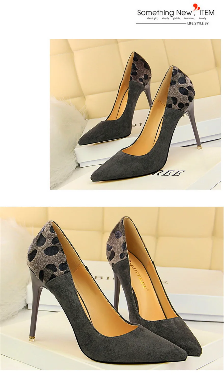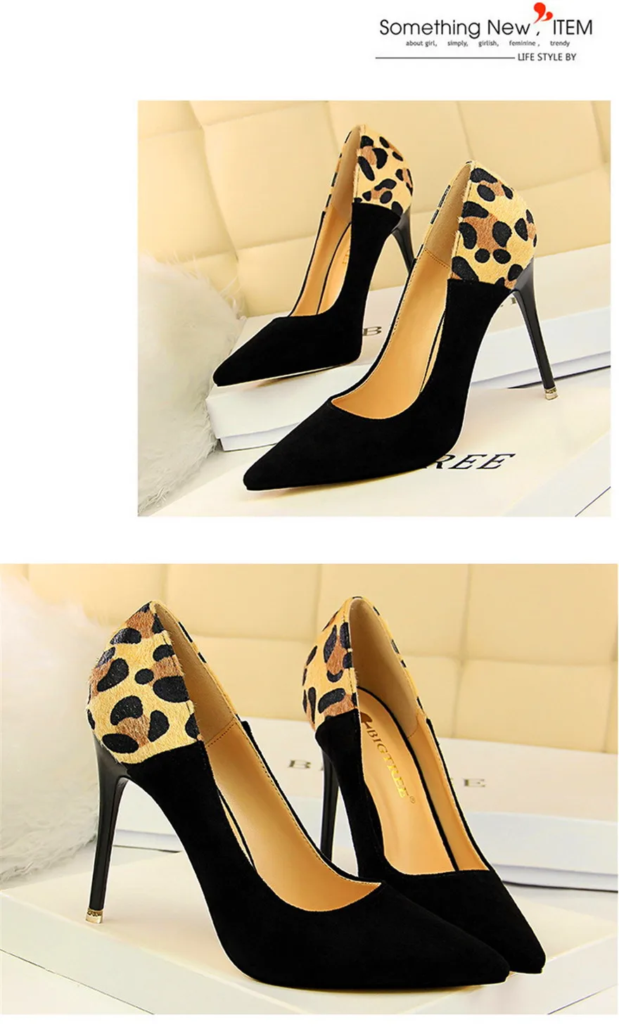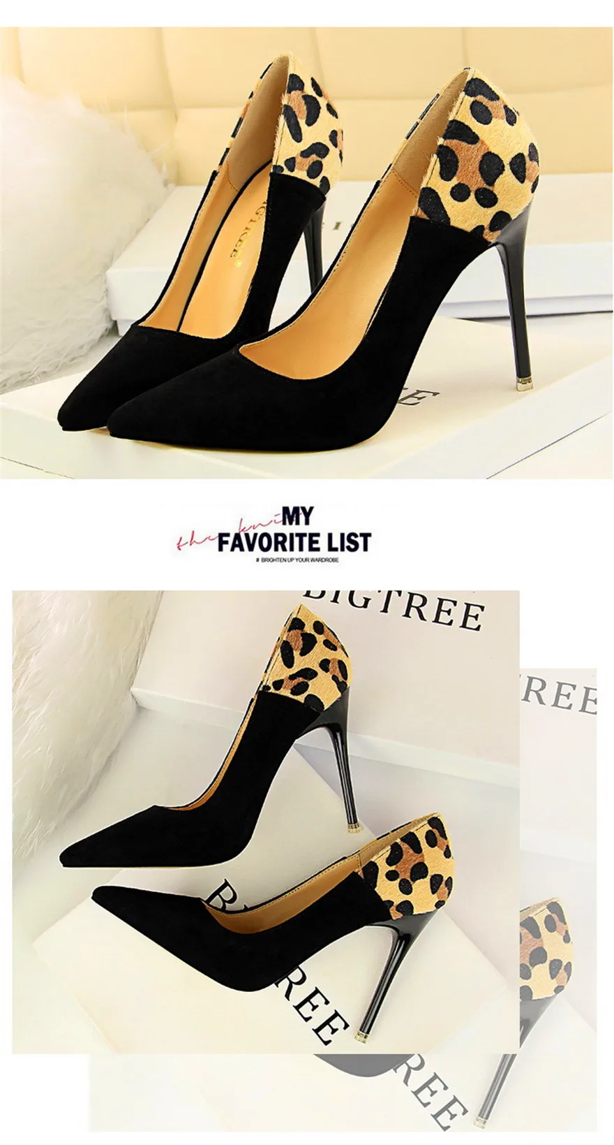 Item:Sexy Leopard Spliced Flock Show Thin Pointed Toe Women's Party Shoes