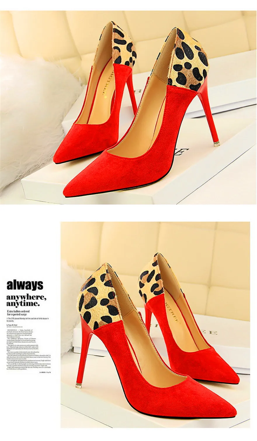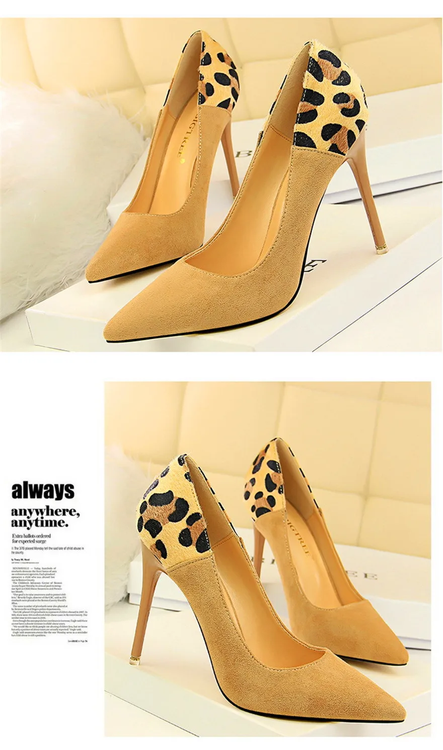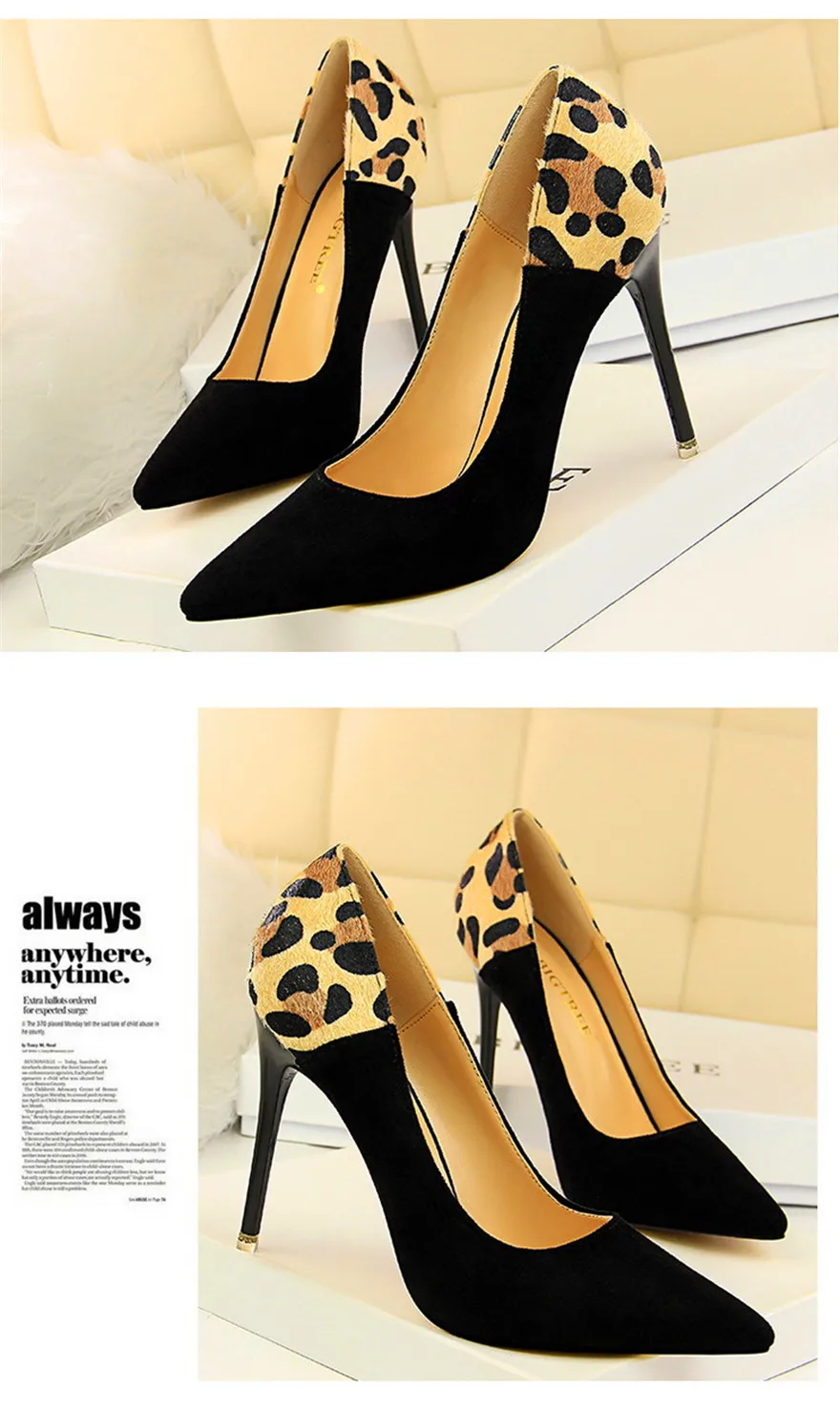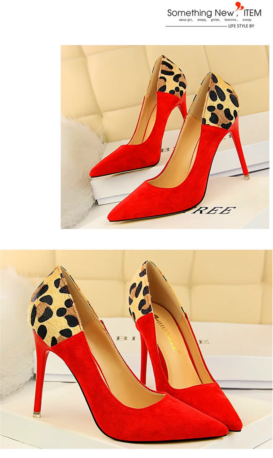 Item:Sexy Leopard Spliced Flock Show Thin Pointed Toe Women's Party Shoes