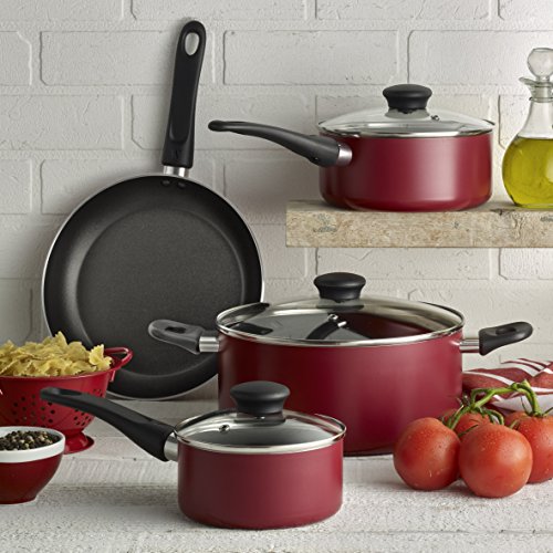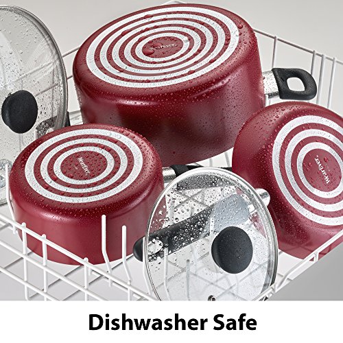 WearEver B023SA Complete Nonstick Dishwasher Safe Cookware Set, 10-Piece, Red