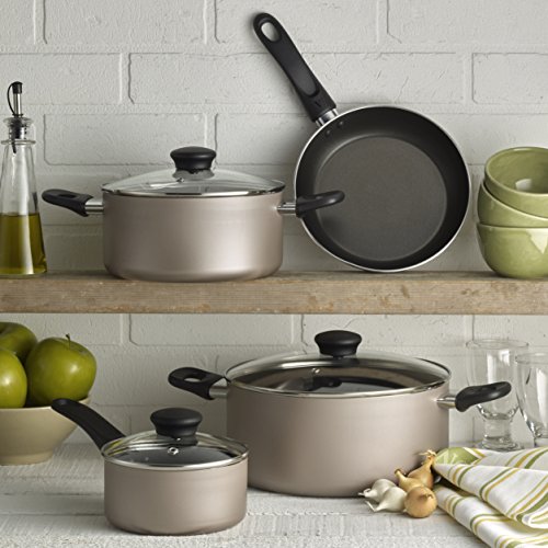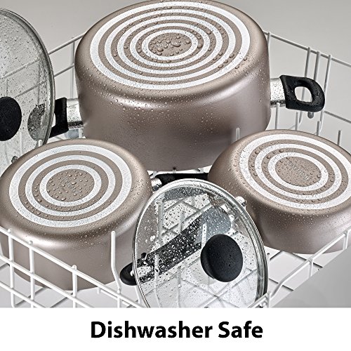 WearEver B022SF Complete Nonstick Dishwasher Safe Cookware Set, 15-Piece, Champagne