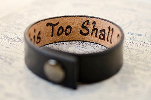 -. Title : This Too Shall Pass - 3/4 inch wide Minimal Black Leather Cuff with Custom Secret Message Hidden Inside