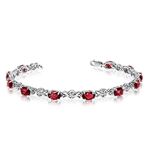 -. Title : 14K White Gold Oval Garnet and Diamond Bracelet