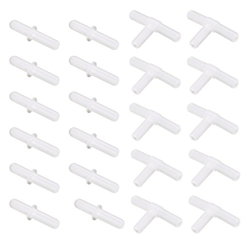 White plastic fish tank connector: aquarium tubing connector has 2 shapes of T and straight, they are made of good quality white plastic, non-toxic and durable