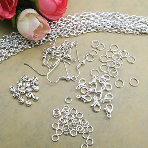 - Contain: 50 x Headpins 30mm, 50 x Eyepins 50mm, 50 x Headpins 50mm, 50 x Eyepins 30mm, 30 x Lobster Clasps 10mm, 2m Cross Chains, 100 x Jump Ring 4mm, 50 x Jump Ring 6mm, 50 x Bead Covers 3mm, 200 x Seed Spacer beads 2mm, 100 x Glass?beads 6mm, 100 x Glass pearl beads 6mm, 40 x Ear Hooks 18mm, 3 x Nose Pliers