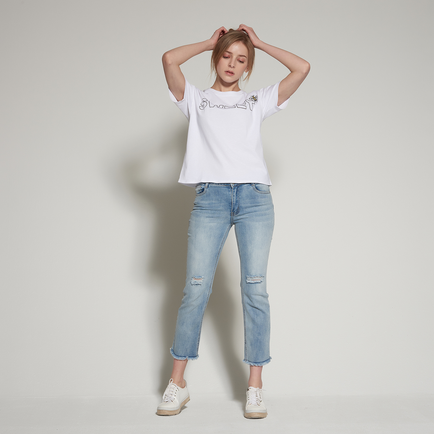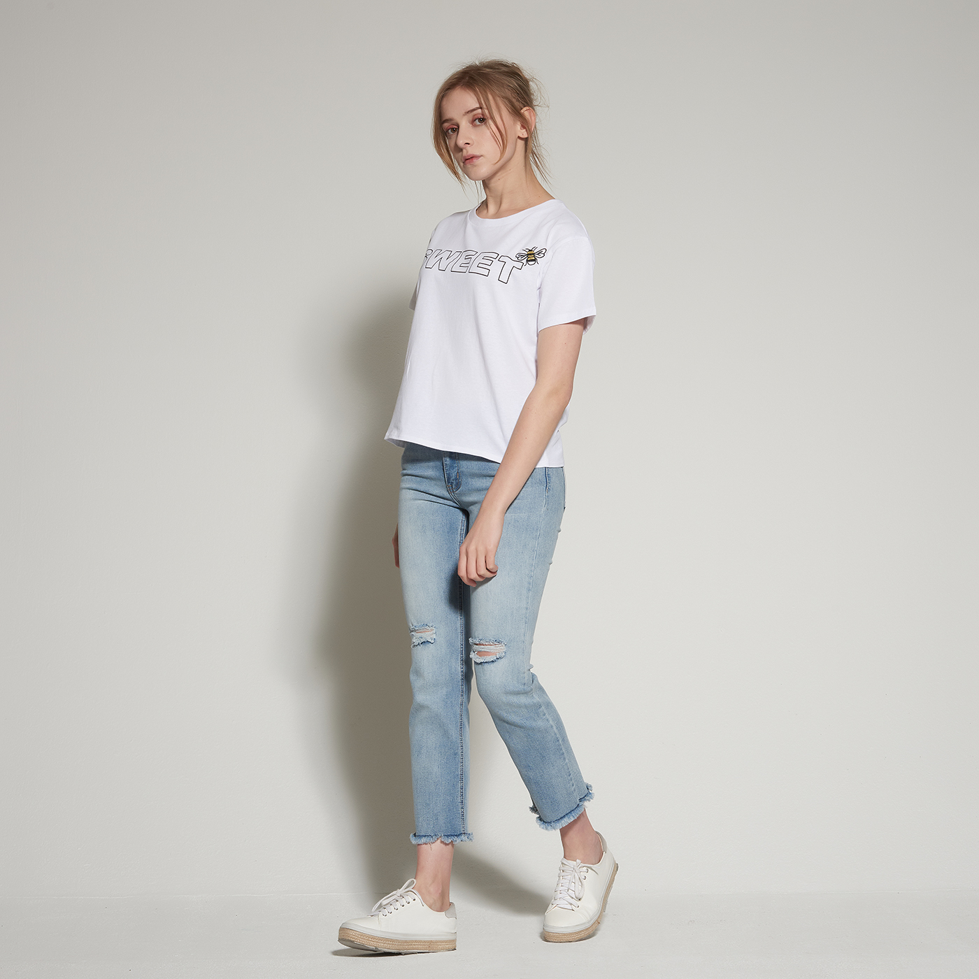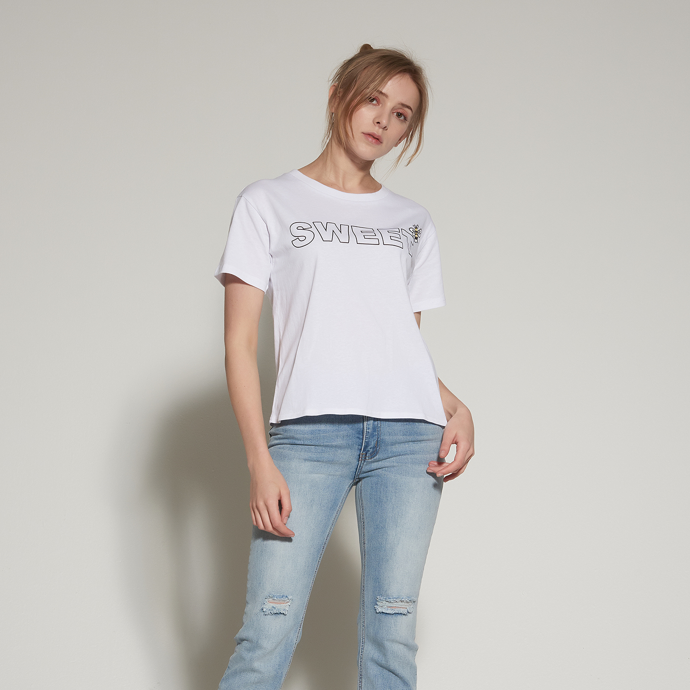 달콤한 꿀벌 자수 티셔츠입니다.