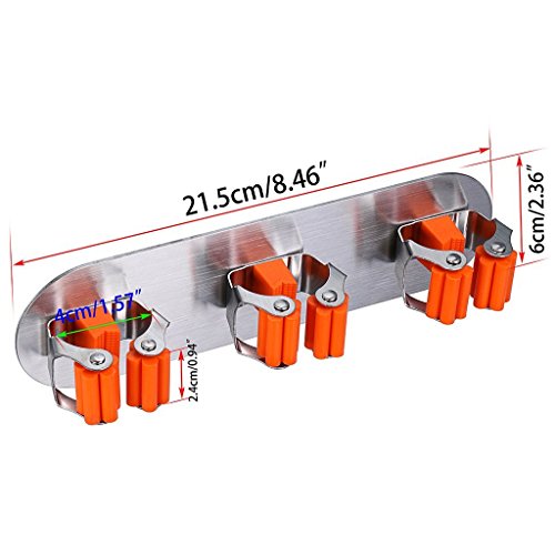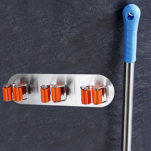 - 3M Self Adhesive Brushed Stainless Steel Mop and Broom Holder with high viscosity properties, weather resistance and durability, to ensure that mop and Broom do not falling off.