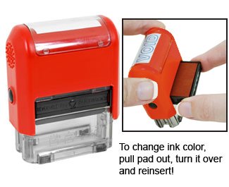 Features a two-color (Red/Blue) ink pad that doubles the number of impressions and the useful life of the pad