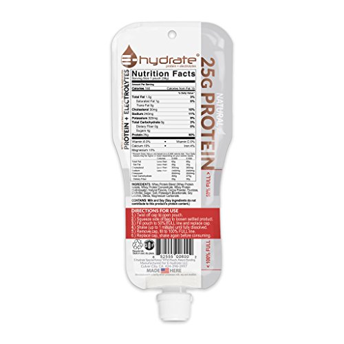 ReleaseDate : 2016-12-01 Studio : E-Hydrate Publisher : E-Hydrate Binding : Health and Beauty Product Description Made from natural ingredients with the great flavor you crave and the nutrition you need. Clean, natural protein with only 150 calories and just 4g of sugar per pouch. Complete amino acids profile in every serving with 5g of BCAAs (branched chain amino acids) and a tri-whey protein blend of hydrolysate, isolate, and concentrate for optimum nutritional support. Perfect anytime, anywhere, simply add water directly in to the pouch, shake and enjoy. Fill. Shake. Go 0