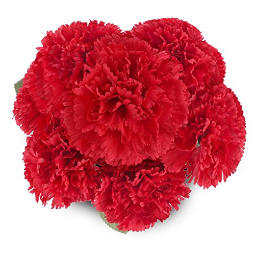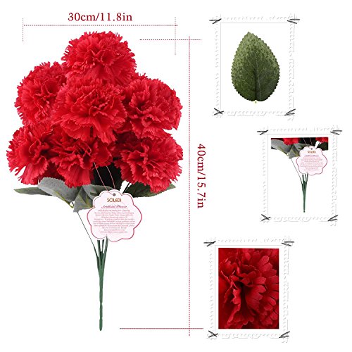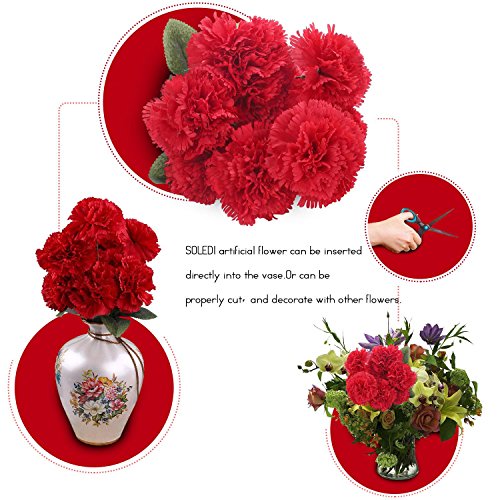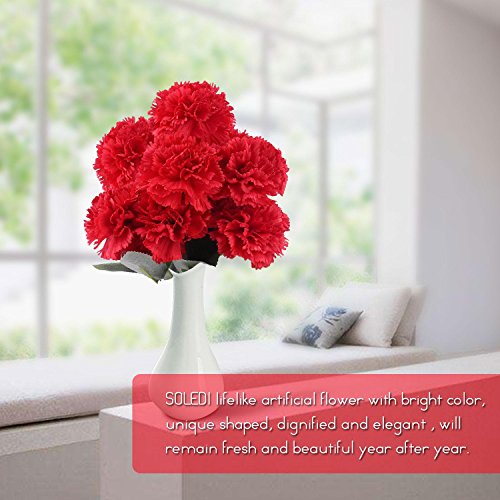 Fake Silk Carnations Artificial Flowers SOLEDI 10 Heads for Bouquet DIY Party Wedding Home Bar Decor (Red)