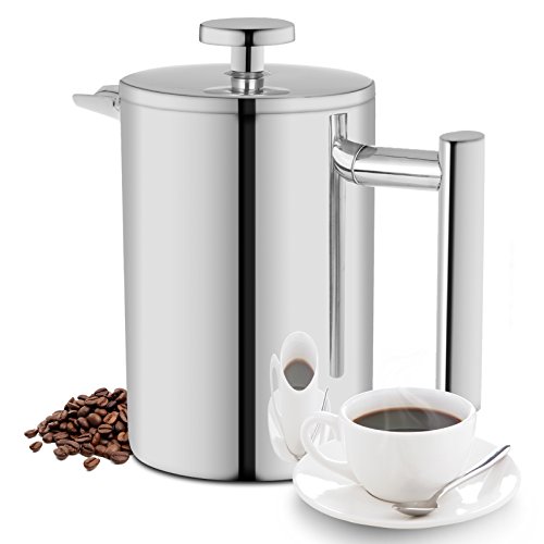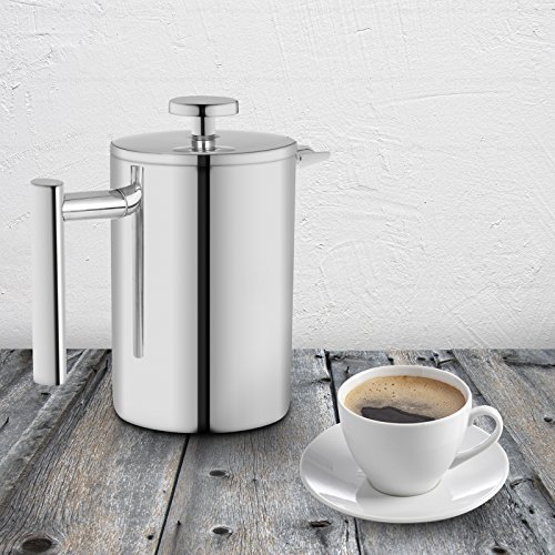 The Most Reliable & Durable Coffee Press A lightweight, handheld French press with a stainless steel handle offers a smooth pouring spout to reduce spills or drips. Perfect for every coffee lovers.