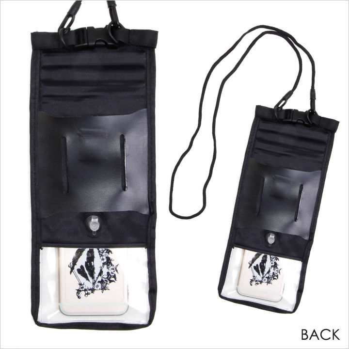 PVC防水素材を使用した携帯や小物の防水ケース。ポーチに入れたままでカメラも撮る事ができるように両面のクリアシートを採用。2重スライドジッパーと折り返しフラップ付の防水性です。