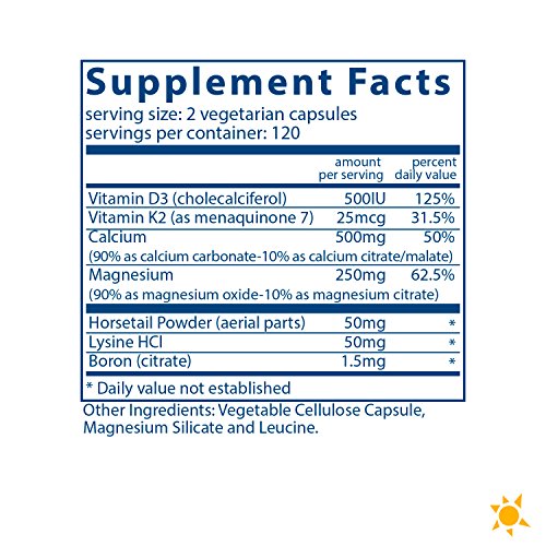Osteo-Nutrients II is a comprehensive bone support formula which contains high amounts of elemental Calcium and Magnesium, as well as the other essential nutrients for healthy teeth and bones. Calcium is essential to many physiological functions such as helping to maintain and build bone mass and strength before and during menopause. Boron, which also plays a role in bone health, has been added to this formula. Vitamin K2-7, menaquinone, promotes the ability of osteocalcin to bind calcium and supports healthy bone mineralization. Besides supporting bone health, Vitamin K2-7 also promotes healthy cardiac and vascular function. Regular exercise and a healthy diet with enough Calcium helps teen and young adult women maintain good bone health. Adequate Calcium intake is important, but daily intakes above 2000mg are not likely to provide additional benefit. Vital Nutrients mission is to manufacture superior quality nutraceuticals that exceed both industry and government standards and provide clinically effective results. They provide over 200 science-based and clinically effective products. They have a comprehensive quality assurance program to ensure that purity and potency is consistently met on every product that they manufacture. Vital Nutrients uses independent U.S. ethical laboratories to test all raw materials and finished products. Each raw material is tested, regardless of origin, for purity and potency. All finished products are tested through a real time stability protocol for expiration date validation. They are an FDA Inspected facility that exceeds FDA cGMPs, and a member of the NPA.Feature