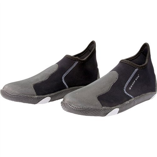 These 3/5mm warm water dive booties have a patented purge system that prevents water from pooling in the shoe while walking. The pull-on design and low profile makes them great for traveling. They are available in both men's and women's sizing.Feature