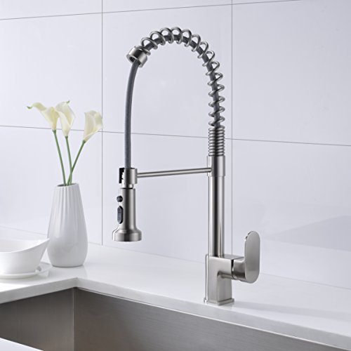 KVADRAT Lead-Free Commercial Brushed Nickel Stainless Steel,Single Handle,Single Lever Pull Out Pull Down Sprayer Spring Kitchen Sink Faucet, Brushed Nickel Kitchen Faucets