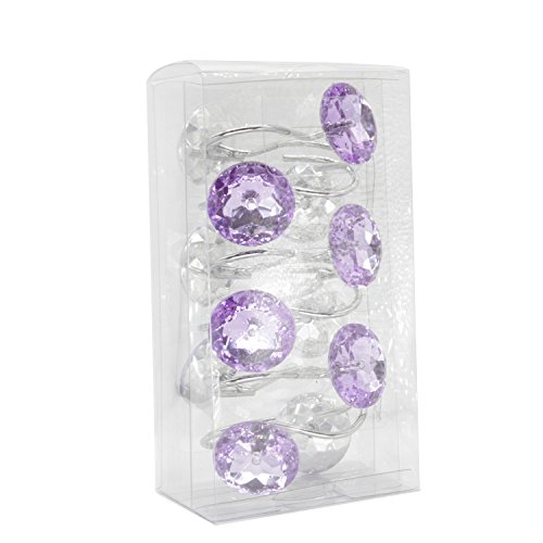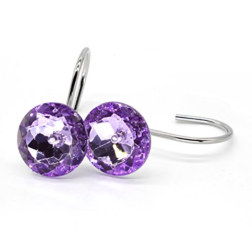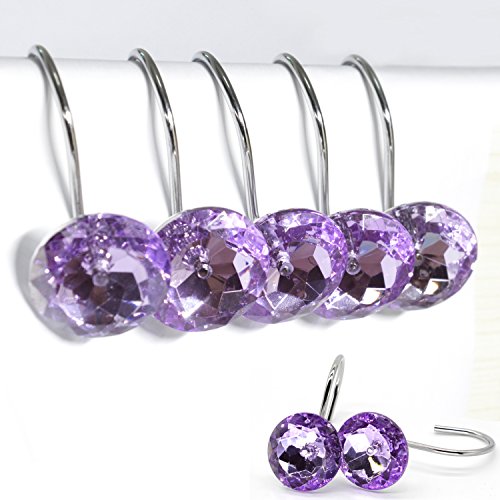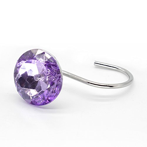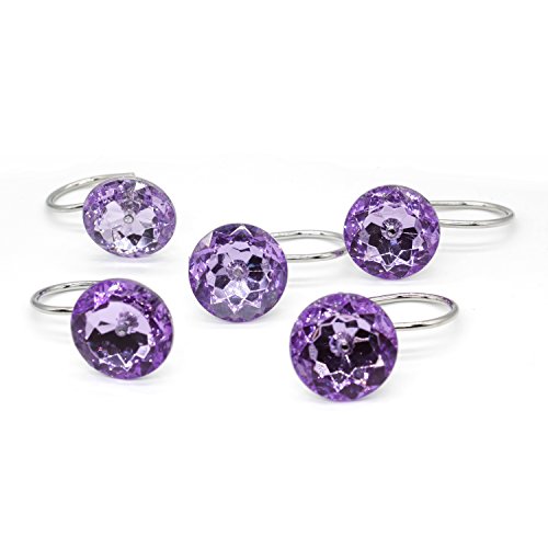 BEAVO Acrylic Fashion Decorative Home Rolling Purple Shower Curtain Hooks Rhinestones Bathroom Bath Baby Room Bedroom Living Room Decor Set of 12 Rings (Purple)
