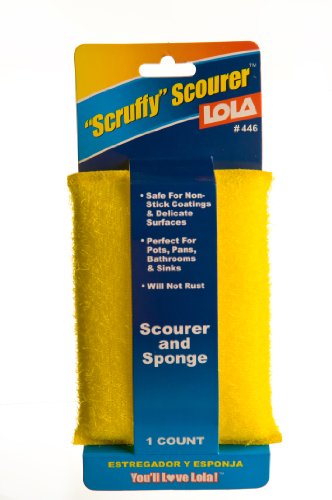 Studio : Lola Products Publisher : Lola Products Binding : Kitchen Product Description Our Scruffy Scourer is made from loose polypropylene wire cloth with a foam sponge core. The Scruffy Scourer won't scratch most surfaces. Be sure to rinse pad after each use. 0