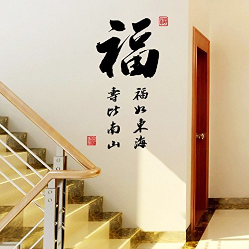 Boodecal Oriental Series Chinese Symbols Blessing for The Old "Happiness As Immense As the Eastern Sea; Longevity As Long As the Southern Mountain" Vinyl Wall Decals Stickers For Seniors Parents Birthday Gift