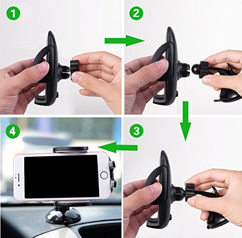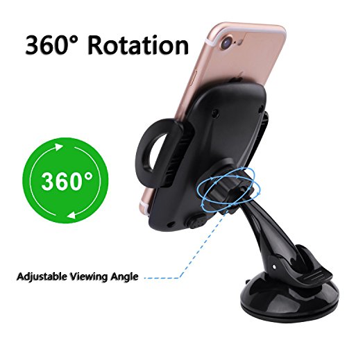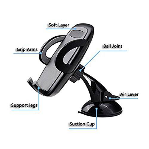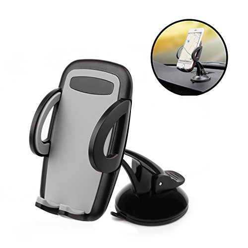 Car Mount Holder, Windshield Dashboard Universal Car Mobile Phone Cradle for iPhone 7 Plus 7 6S Plus 6S 5S Samsung Galaxy S7 Edge S7 S6 S5 HTC M10 and more
