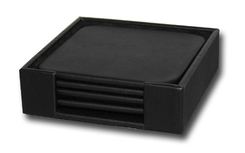Dacasso Black Leather 4-Square Coaster Set