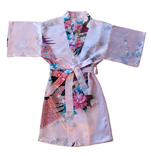 Modern Celebrations created these adorable Children's Peacock Floral Robes, for a Flower Girl or Juniour Bridesmaid using a soft polyester silk fabric. These precious robes are lightweight and will make her feel and look a part of the Bridal Party . Kimono, crossover wrap robes come OSFM and are loosely gathered at the waist with a tie sash.