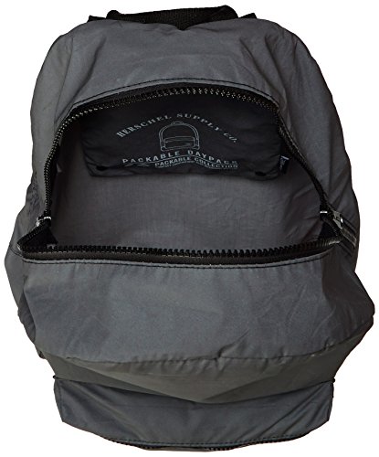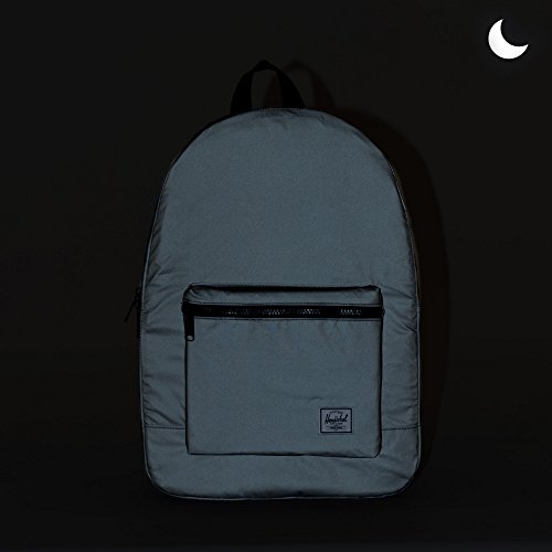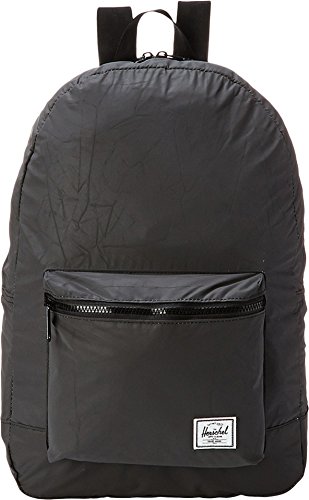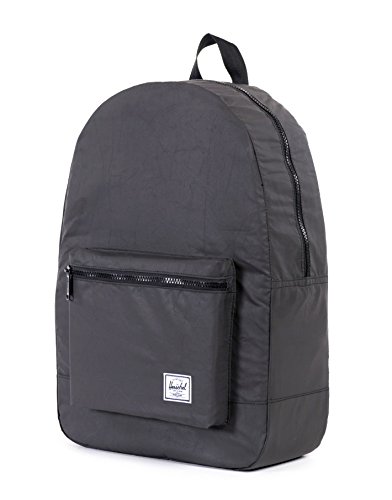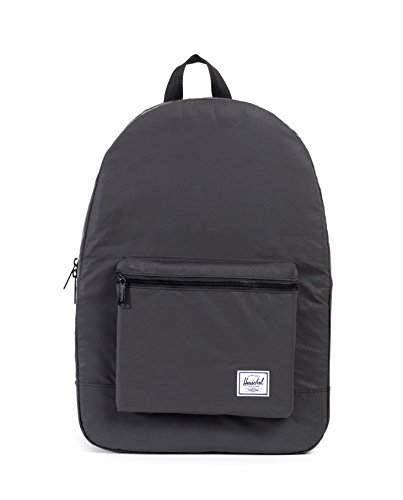 The lightweight packable daypack is constructed with reflective nylon and fits into its own internal pocket for easy storage.