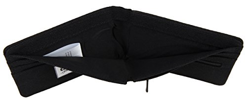 Compact thin bifold wallet with main compartment for cash and 5 credit card slots