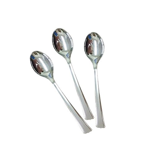 ADD SOME STYLE AND CLASS TO YOUR PARTIES AND EVENTS. Use these high quality disposable mini silver dessert / appetizer spoons. Pack includes 96 mini silver spoons, it measures 4.5 inches.